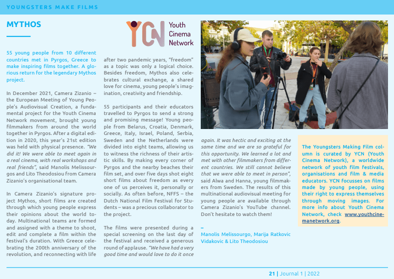 Ένα άρθρο για το 11ο Mythos Project στη στήλη του Youth Cinema Network στο περιοδικό της ECFA (Ευρωπαϊκή Ένωση Παιδικού Κινηματογράφου).