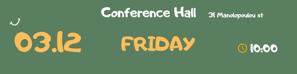 Was Kapodistrias a hero?Are there any heroes > 10’ > Team of the 1st High School of Ioanis Kapodistrias (Out of competition) Grandma, grandpa…tell me a fairytale > 7’48’’ > Primary School of Kalavarda Rhodes (Out of competition) Baby Butterfly > 1’26’’ > Primary School of Nea Anatoli HappyBirthdaywithout > 2’49’’ > Film group of the 13th Primary School of Serres Lockdown> 4’05” > Anamorphic Team A Twist > 8’45” > Pablo Soto Devised Space 2020 > 9’26” > Art High School of Gerakas Ein Feiner Mensch- A complete man > 6’40” > Art High School of Gerakas Neutralish > 2’16’’ > Yorgos Palaskas- General Lyceum of Skydra “Georgios Dimou” Non – Binary > 6’47’’ > Ilianna Stavropoulou The transistor > 7’37’’ > Orestis Rouskas The forest > 9’30’’ > Yiannis Akrivopoulos