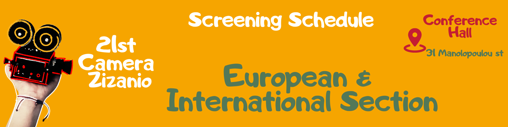 SOLItudini > 4’ 21” > I. C. 70 Marino-Santa Rosa > Italy An emotional adventure > 3’14’’ > Istituto Comprensivo Ponte San Nicolò > Italy The lost apple > 1’30”> Mompiani Secondary School – IC Centro 3 Brescia > Italy Bogáncs > 2′ > Makói Videóműhely /The Video and Art Workshop of Makó > Hungary Inspiration > 2’14” > Artem Kulak > Ukraine Inside the silence > 10′ > Cinema en curs > Spain ARAAM A Robot And A Mirror > 1′ > “Maris Den Haag” (NFFS) > The Netherlands Plastic> 9’50” > Erasmus Zoetermeer (NFFS) > The Netherlands Distorting Mirror > 9’52” > Alisa Lander > Russia Horizons > 7’12” > Sean Treacy > Ireland Wendigo > 9’59” > Max Hendrickson > Ireland Fomo > 6’13” > Kevin Meggs , Max Hendrickson > Ireland A Stopped Movie > 3’51” > Luksuz Produkcija> Slovenia All is Fair in Love and Film > 4’51” > Sabine Wimmer > Austria Fade – Fate > 1’43”> HBLA Art School-, Sadet Muadini > Austria Christmas tree > 2’50” > Augustin Marcadé > France Lumiere > 2’20”> Manon Sabrier > France Our Wales > 7’31” > Marcelina Zwegrodzka & Ciara Owen >Wales Nameless Walls > 3’01” > Fée Brandt > Germany I am there for you > 3′ > Sissi Ulmer > Germany